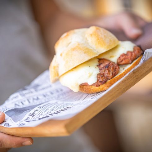 Panino Salsiccia e PecorinoRosetta con Salsiccia di Suino alla griglia e Pecorino Fuso |